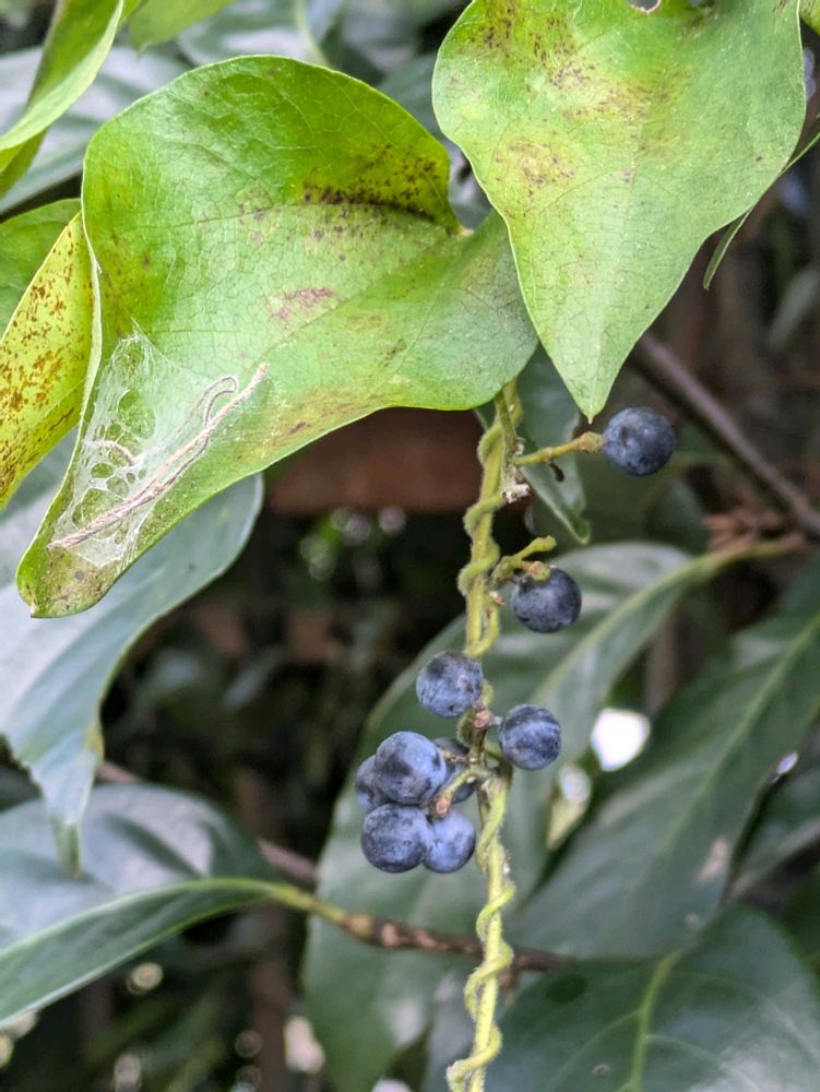 低山でみた「アオツヅラフジ」の実。 白い粉のようなものがついています。