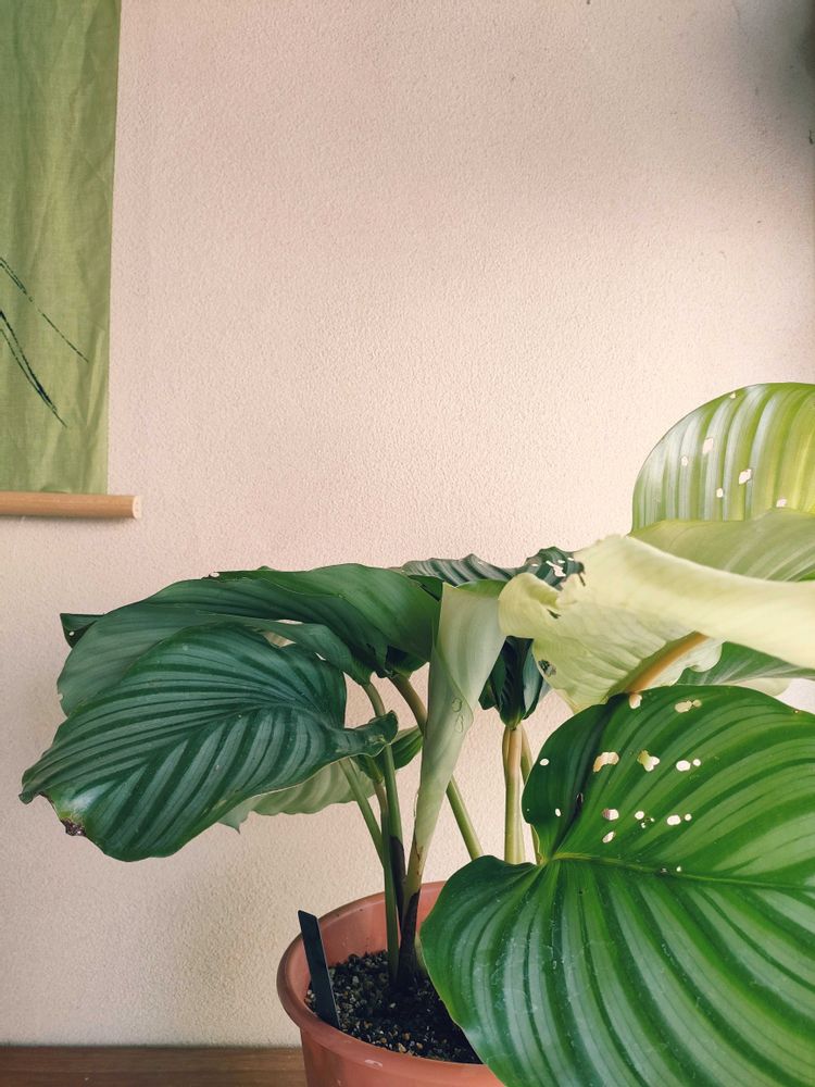 葉の美しさが持ち味のカラテアなので、ちょっと耐え難くなり早々に室内へ入れたけれど、成長度には満足です!✨
