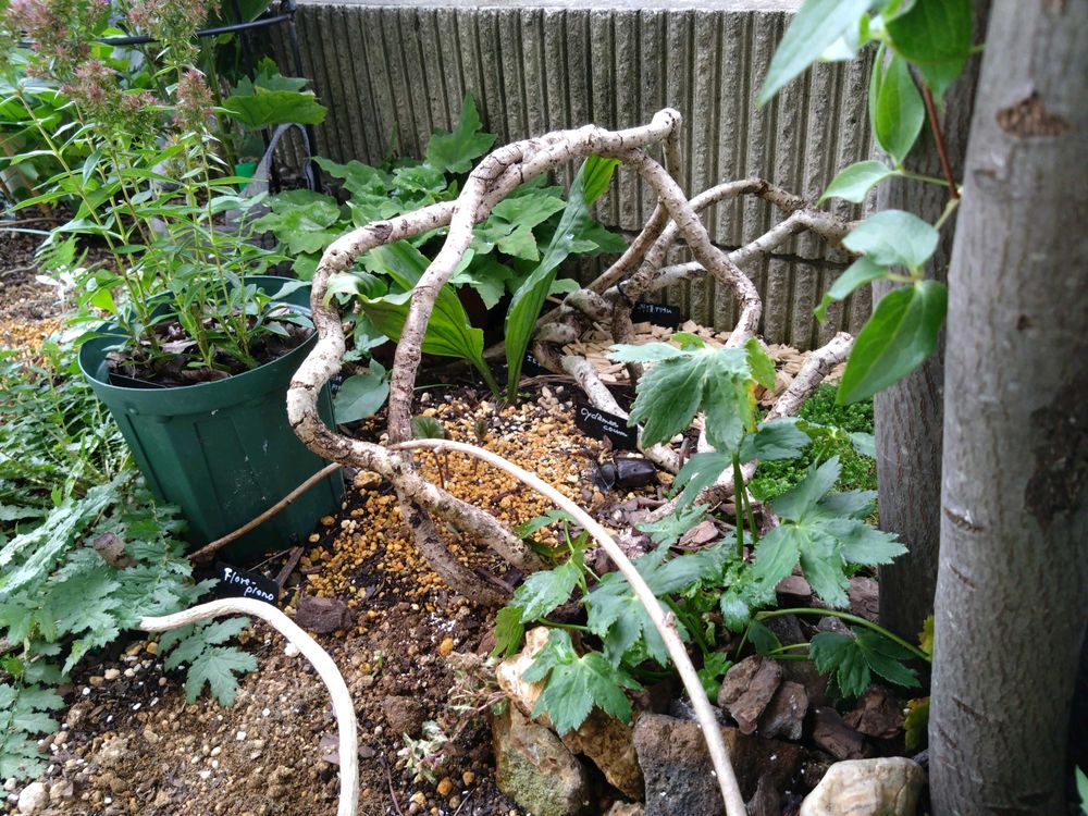 ジューンベリーの足元に定住させたアストランティア、なんか調子あがらないなぁと思ったら、植えが浅かったようで根元が露出してしまってました💦また掘るのも負担になる気がしたので、まわりに石を積み即席レイズドベッド風にして、土をたしてみました🩹