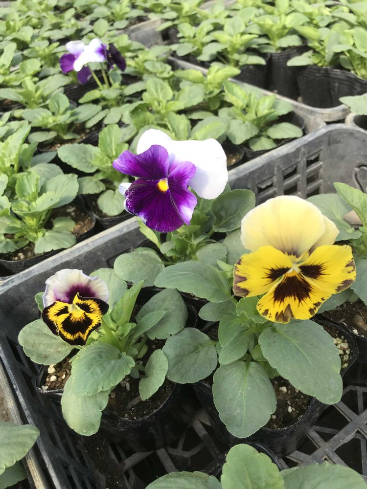 パンジーの出荷中にタイガースミレの種が混ざって咲いてました😊
