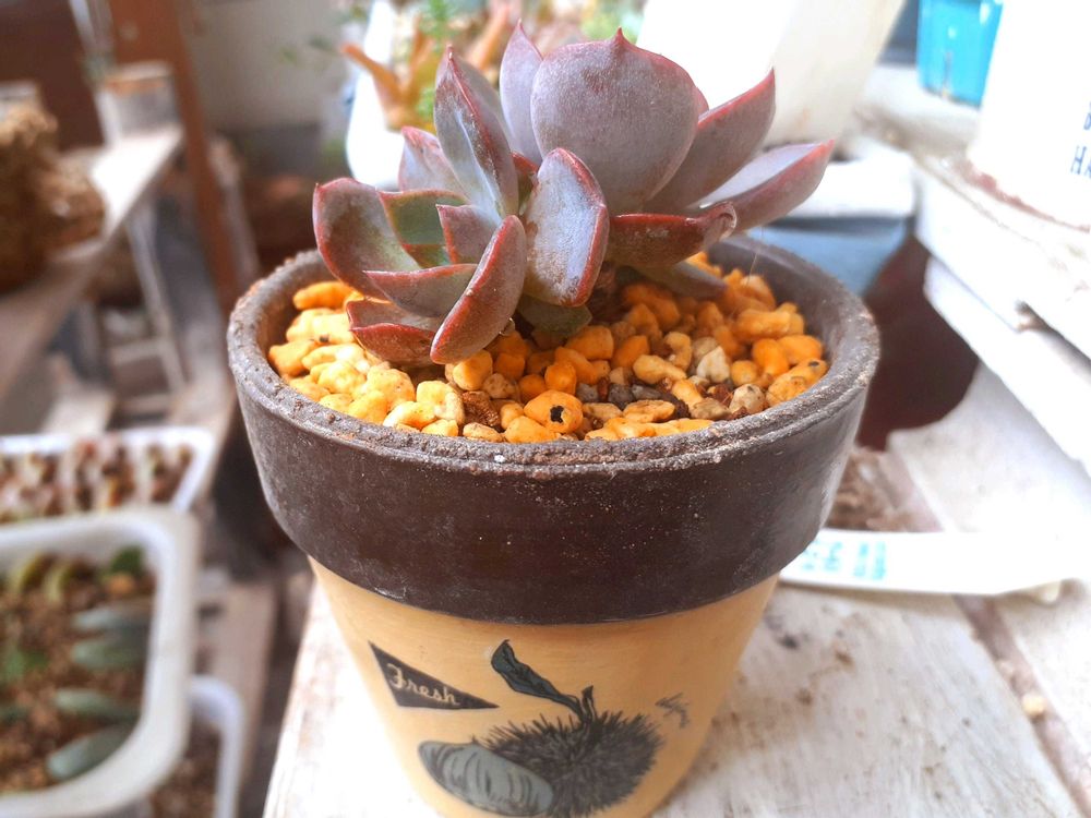 葉挿しっ子ちゃんは倍位に育って 水やりの大切さを知らされた子です🎶