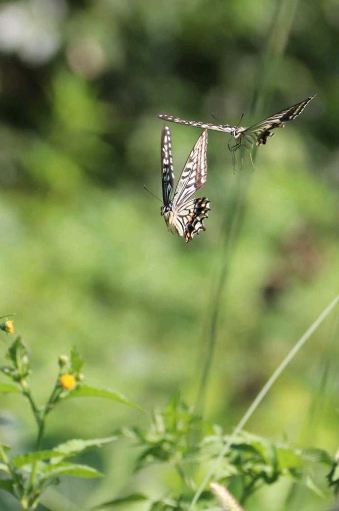 🦋🦋はたまたま二頭きましたが、トンボの撮影中で遠くてトリミングしています