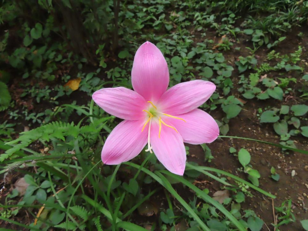 濃いピンクの「ゼフィランサス」が咲いていました。 パチリ