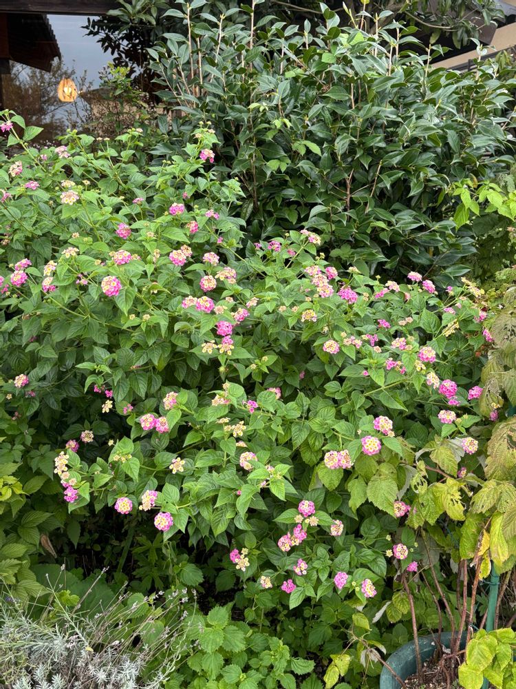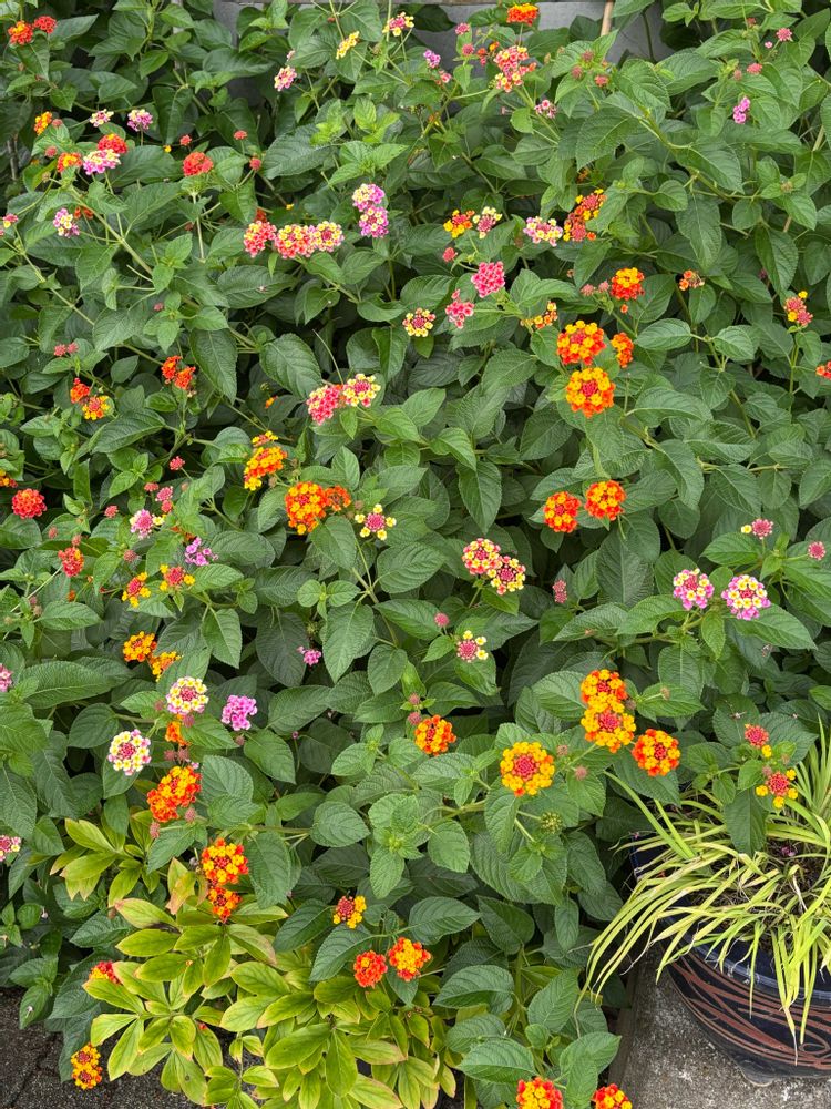 仕事で、栃木県日光市の今市に来ました。JR日光線今市駅近くの喫茶店の店先にランタナがたくさん咲いていました。見事です😄