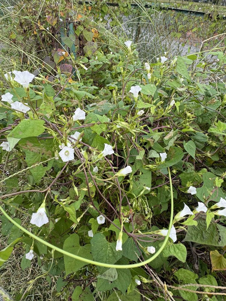 ①田んぼの畦やフェンスに絡まって咲いている青い朝顔 とても綺麗 散歩道ずっとこれ一色大繁殖してます 外来種だそうです 稲には影響ないのかな?