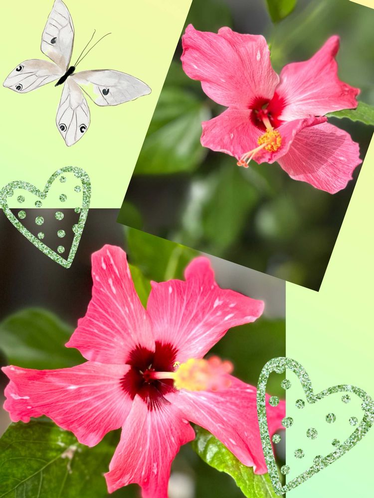 今日のハイビスカス ピンクレディ。昨日の花と今日の花🌸2つ咲いています。一日花なのに夜涼しくなって来たから持っているのかな。