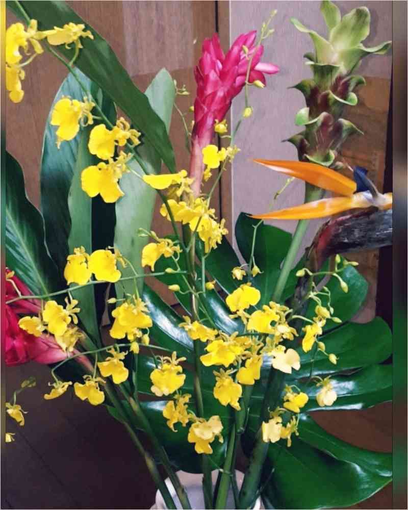 イベント終了後にホールに飾って有ったお花を💐にカットされて持ち帰れるようにテーブルに置いてあり迷いに迷ってハワイっぽいのをチョイスしてみました(笑)
