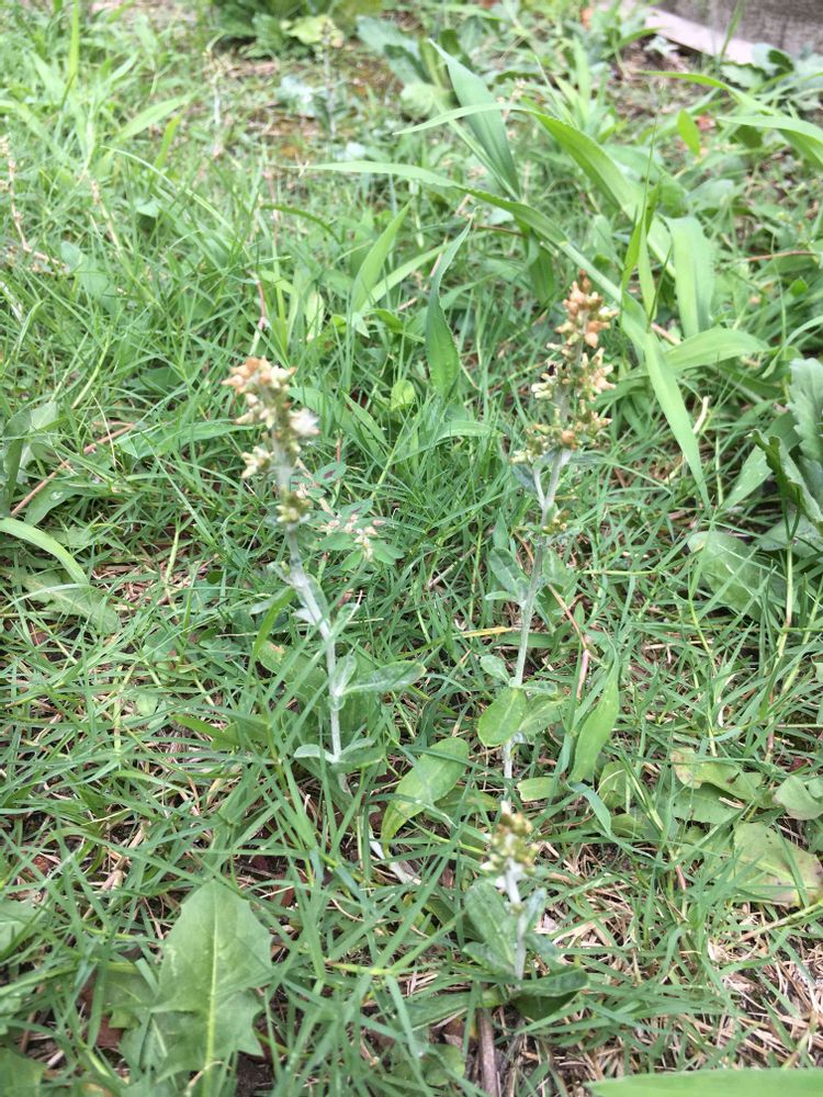 中央の二本生えている雑草です。雑草図鑑作りのため名前を調べています。教えていただけたら幸いです。