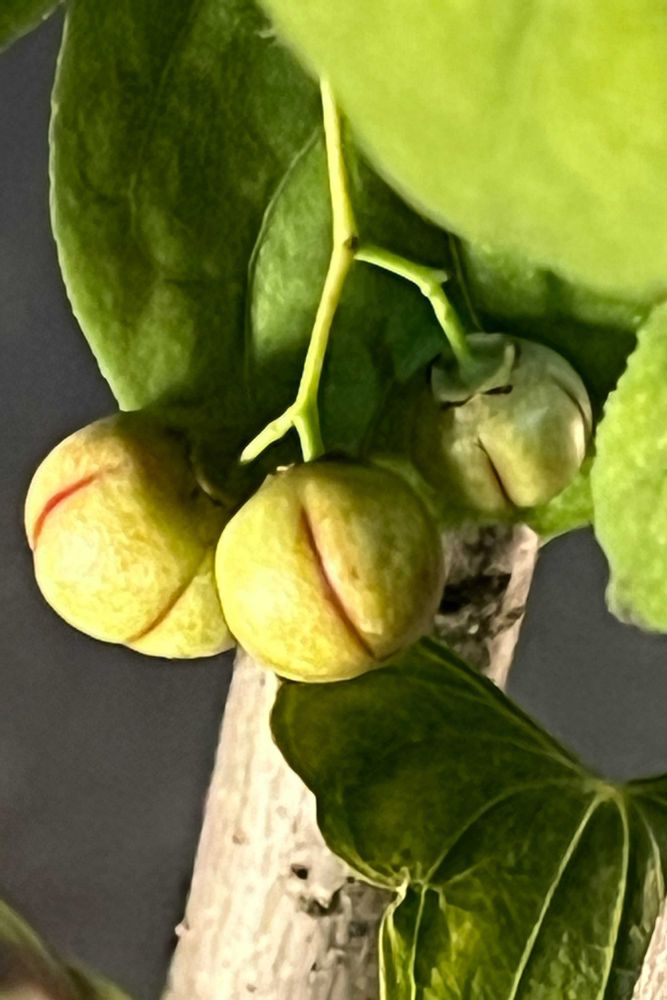 ツリバナです。クロツリバナは3分裂するようで、この子は5分裂します。もっと真っ赤になります。去年初めて出会って、2023.10.17にupしてます。