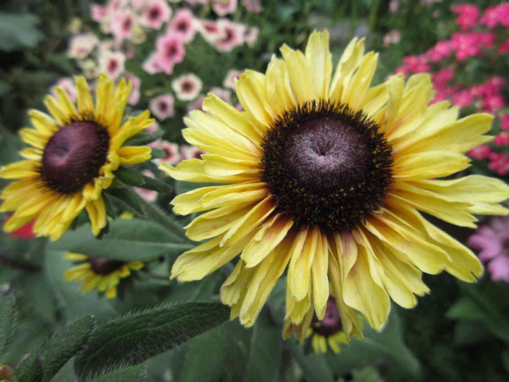 先程の茶色いのと同じ株に咲いている花です。ルドベキアは色幅も八重咲きの咲き方の幅もありますが、同じ株とは思えない程色違い。