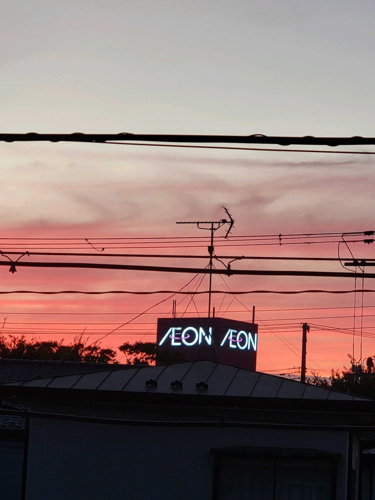 夕日も余りの見事な赤🌇で一枚だけパチリ🤳しました。