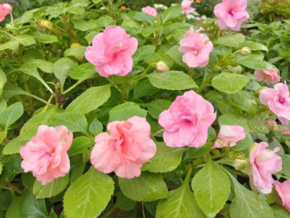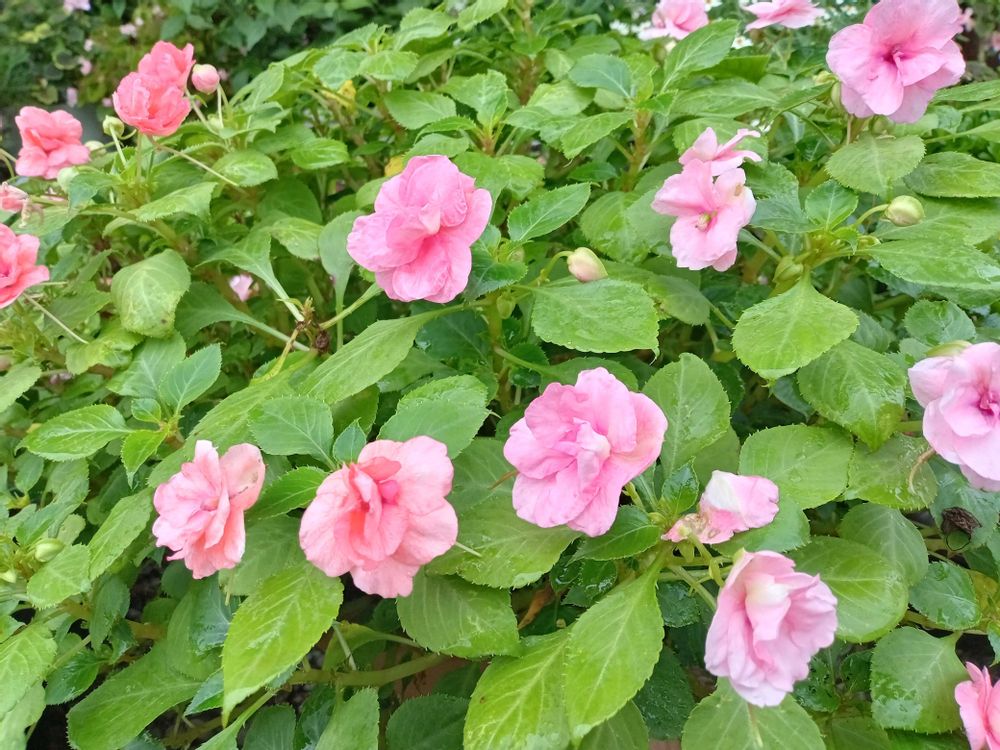 バラ咲インパチェンス、かわいいですね😍インパチェンスを前に植えた時、指の太さのイモムシがいて😱それから怖くて植えられない😭