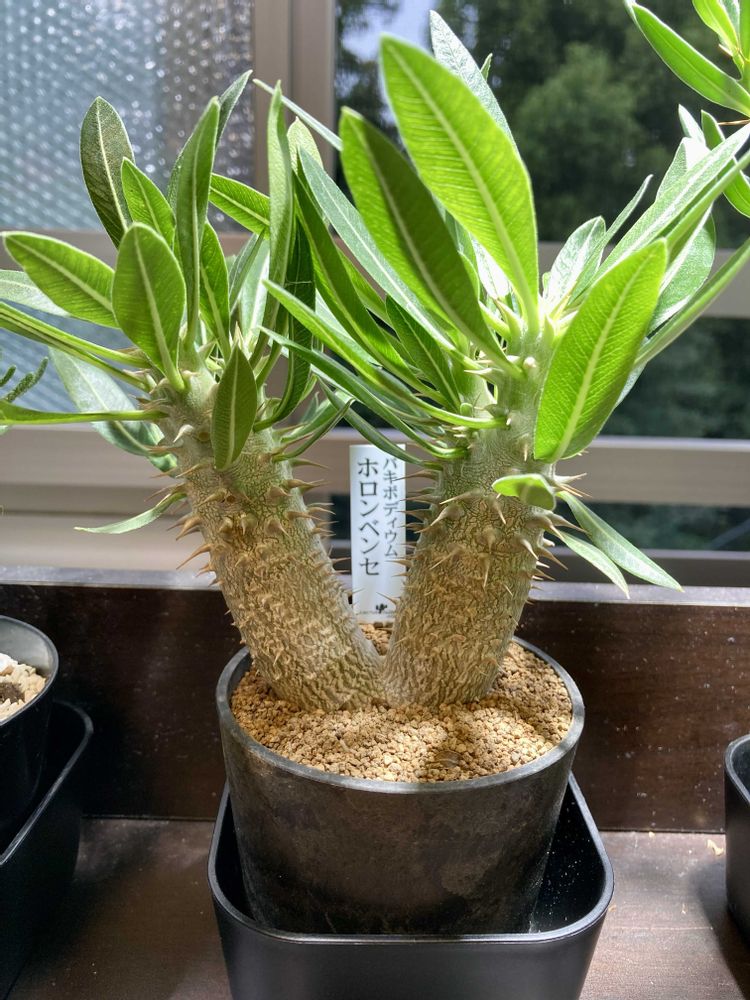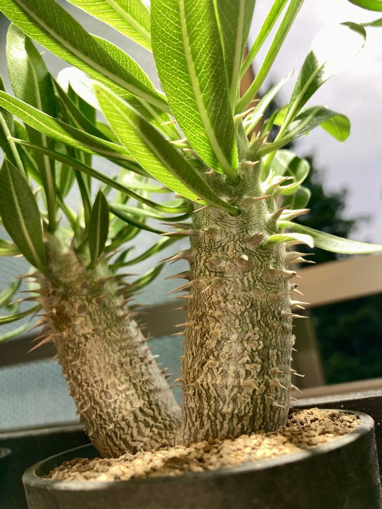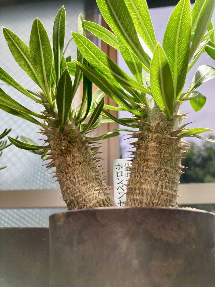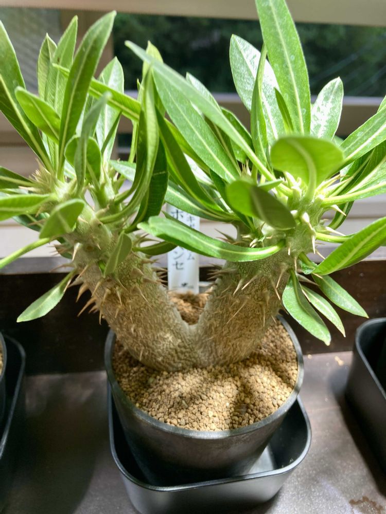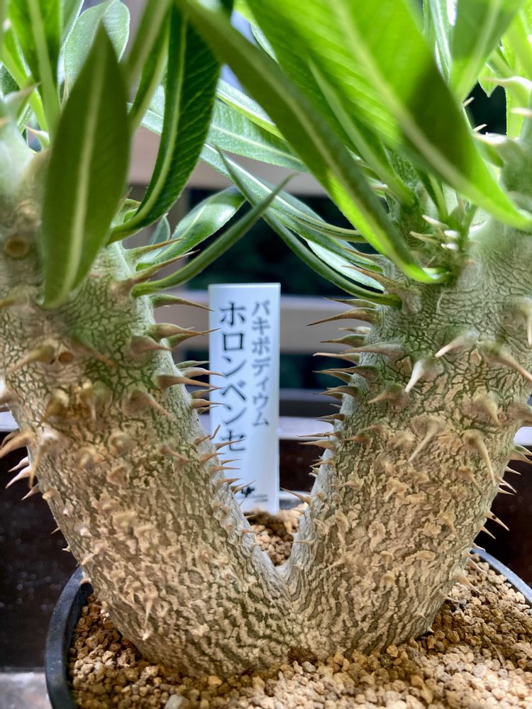 パキポディウム5号機ホロンベンセをお迎えした😊二つに枝分かれしていい感じです😊パキポディウムの個性的なカタチに興味津々です〜