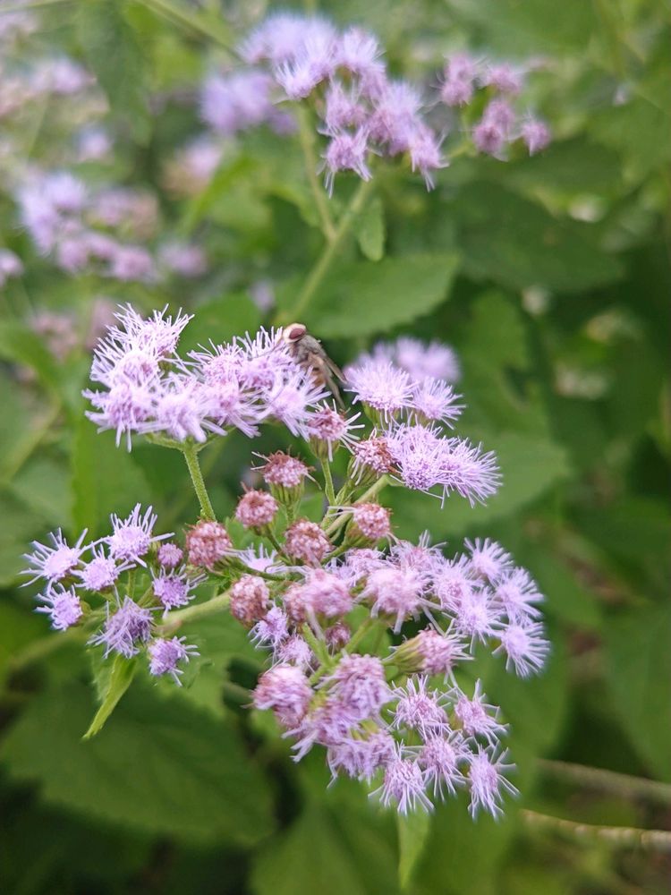 近所の秋の七草ガーデン、フジバカマ書かれてるけどみつけられず😅隣の花壇に、この西洋フジバカマ(ユーパトリウム)が咲いてました。私はこの花とアゲラータムの見分けが付かなくて😣