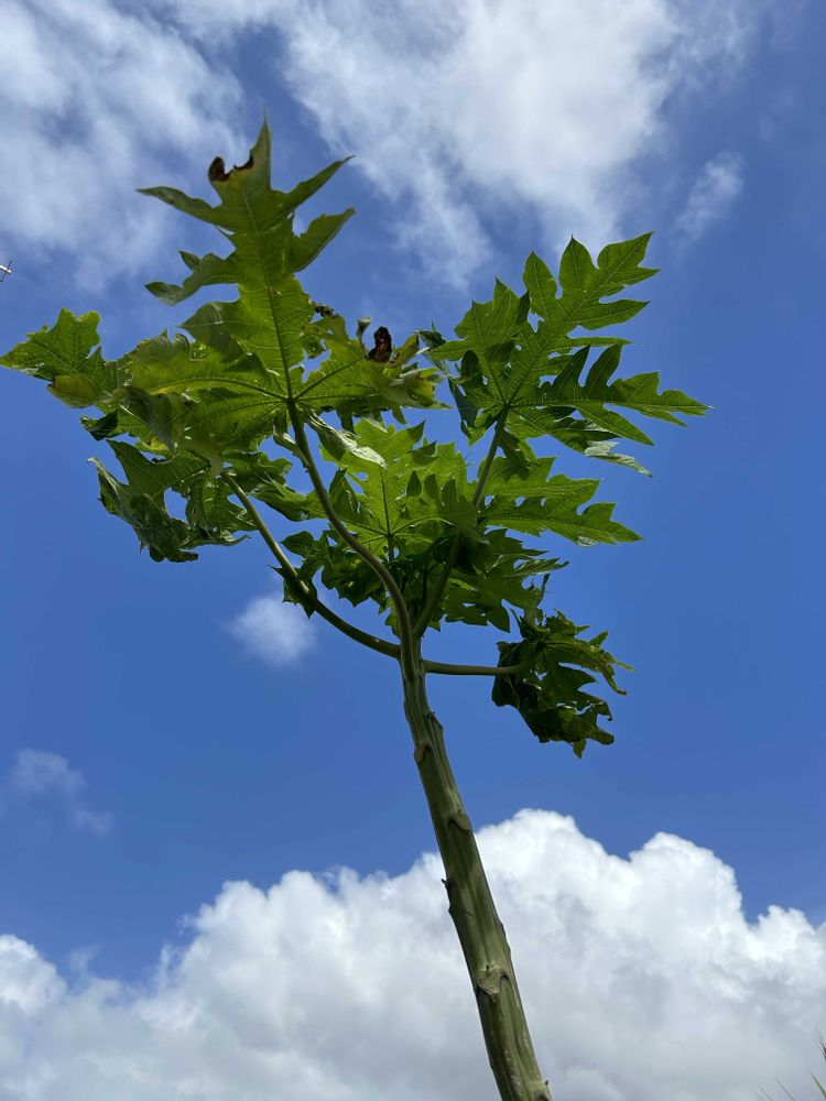 3週間前に屋上へ移植したパパイヤ🌴(26日撮影)垂れてた葉もピーンと上がって元気に育っています。