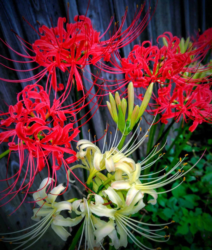 真っ赤なヒガンバナ❤️と淡いクリーム色のヒガンバナ💛の素敵な写真〜💓