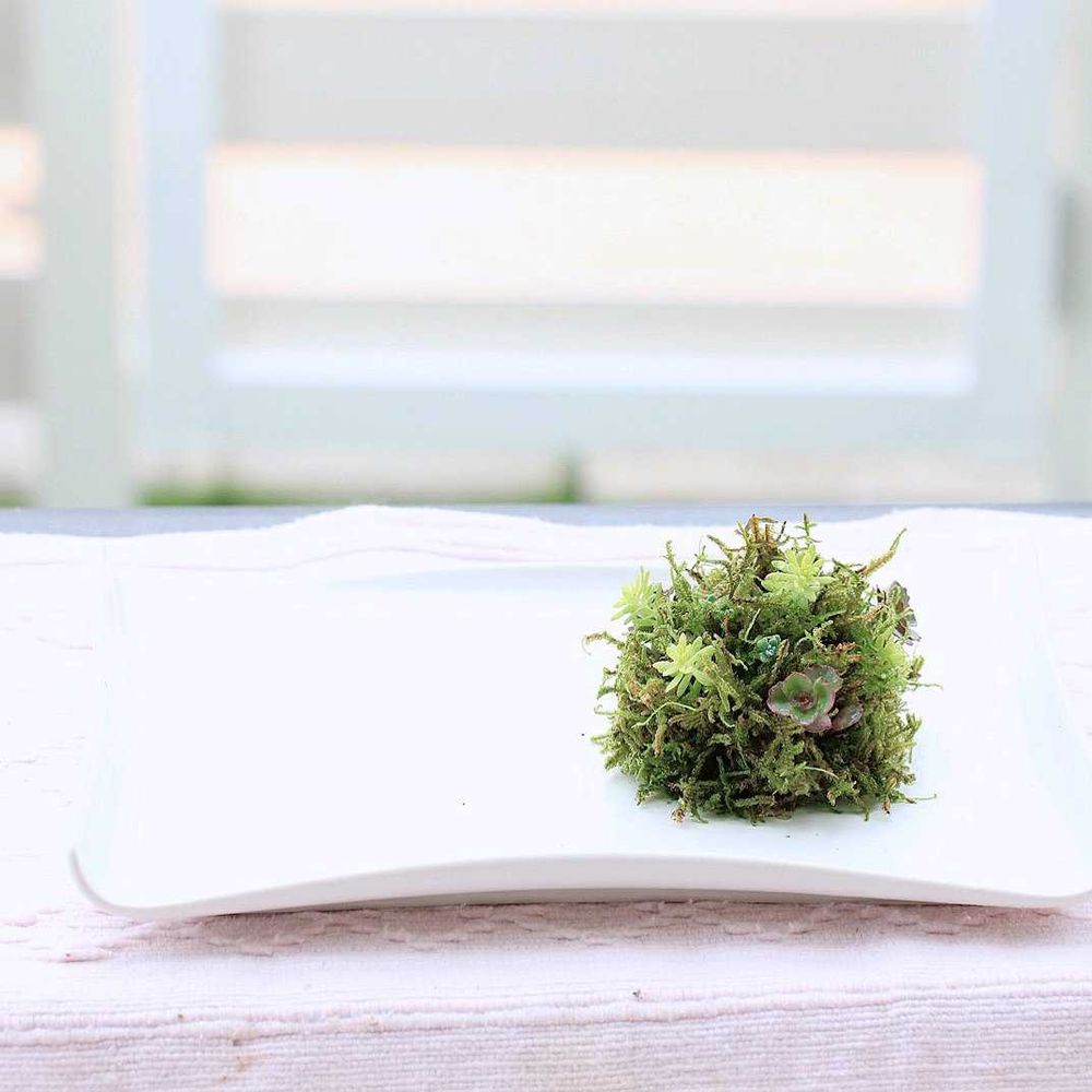 苔を小さく束ねて饅頭のように丸く積み上げる地道な作業、出来上がると可愛くなりました♪