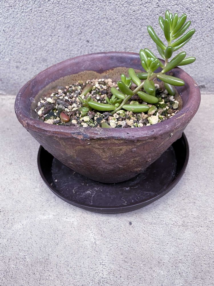 渋い花器に真っ赤に色づいた多肉さん 素敵でしょうね🤗