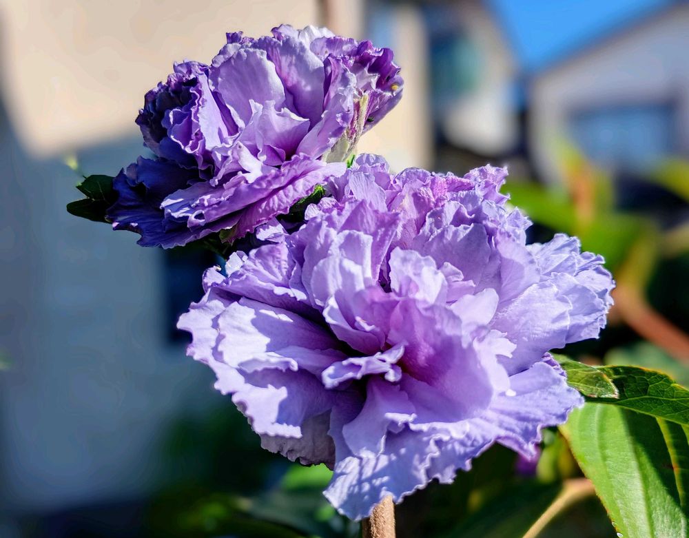 好き過ぎて… …☀今日の木槿「紫玉」も 華やかに、3輪くっついていたりと💜💐、つぃつぃ📱撮って、眺めニッコリ出ます。