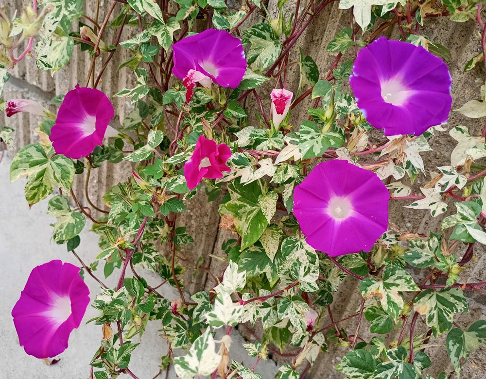 ✨️斑入り葉の枝垂れ朝顔💮🌿