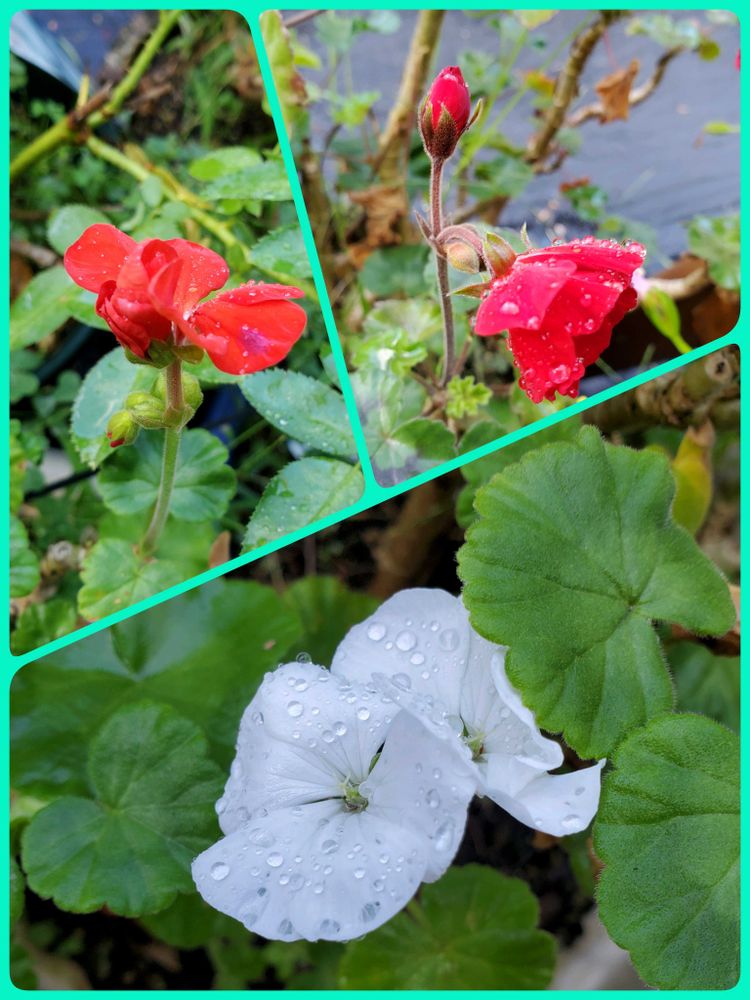 このゼラニュームたちも細くなってしまって、やっと咲いています🎵
