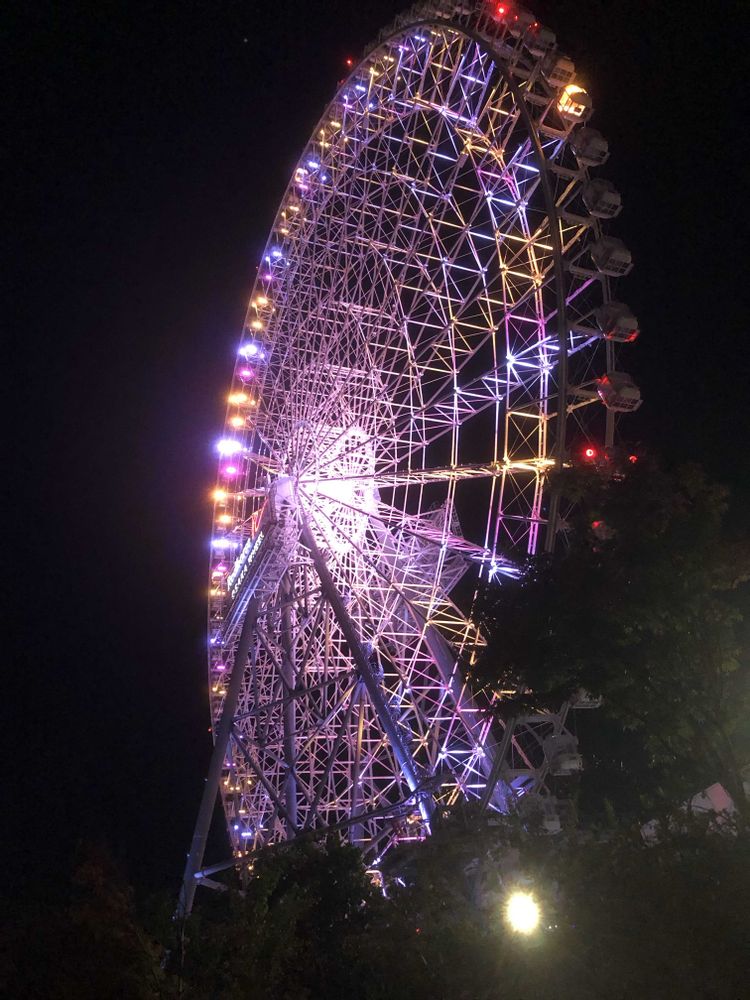 夜の大観覧車レインボーのライトアップが綺麗です🥰