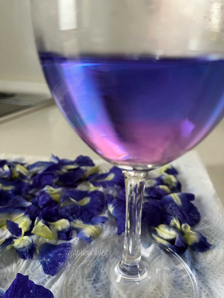 花びら3枚ほどに熱湯を注いだらとても綺麗なブルーのお茶になりました🩵
