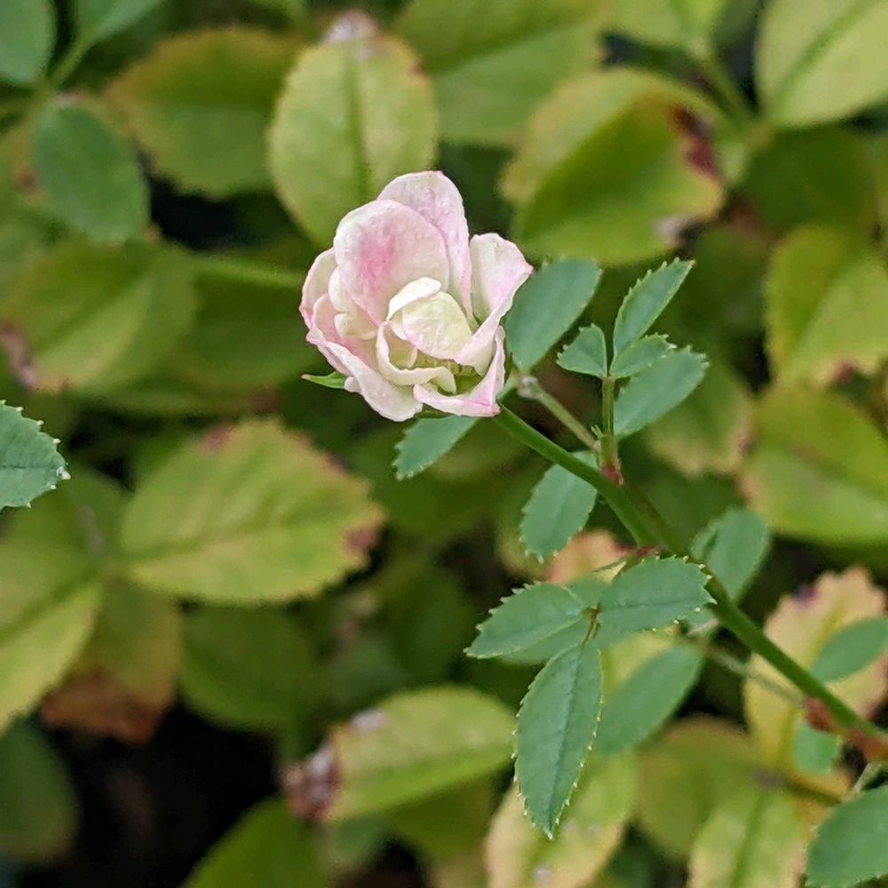 夏の間に咲いていた花は真っ白でしたが、涼しくなってから少しずつ色付いてきました。