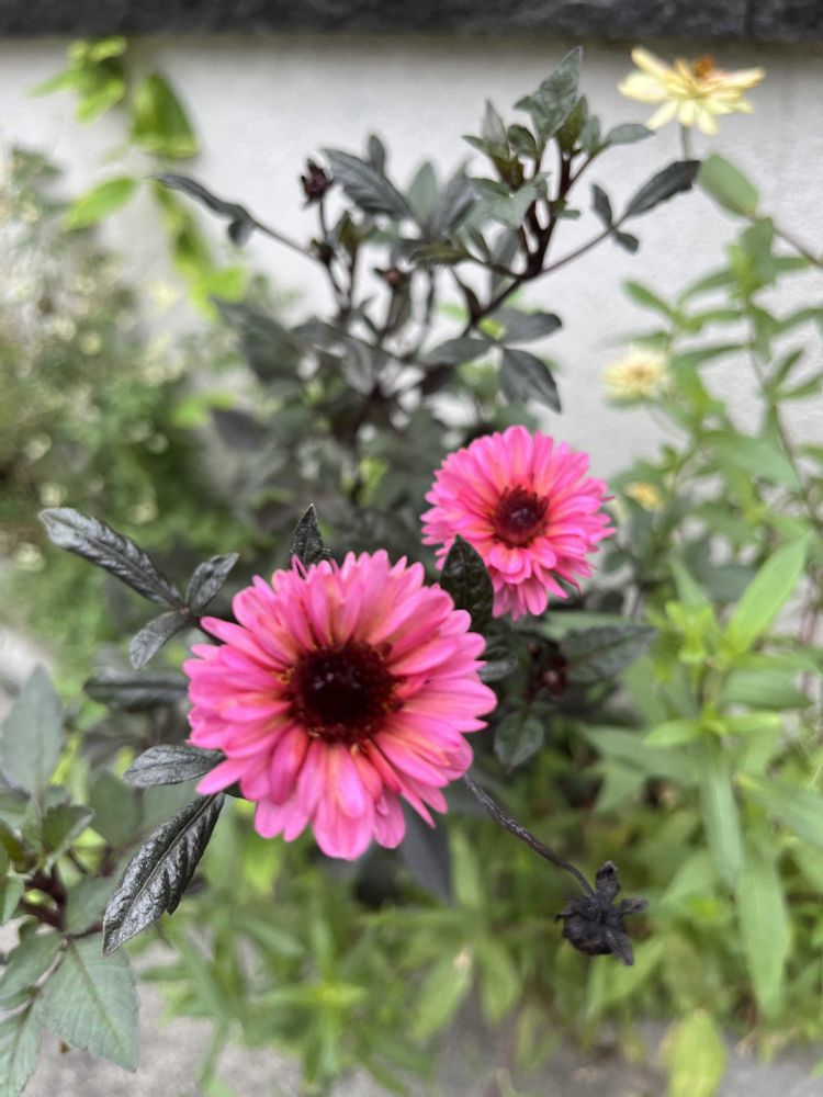 1枚目の銅葉ダリアは昨年購入したのが、球根を殖やしてまた咲いてくれました。