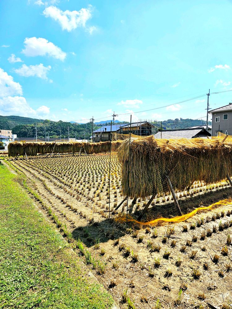 2️⃣近くの田んぼは稲刈り済んで稲架掛け(ハサガケ)に✌️