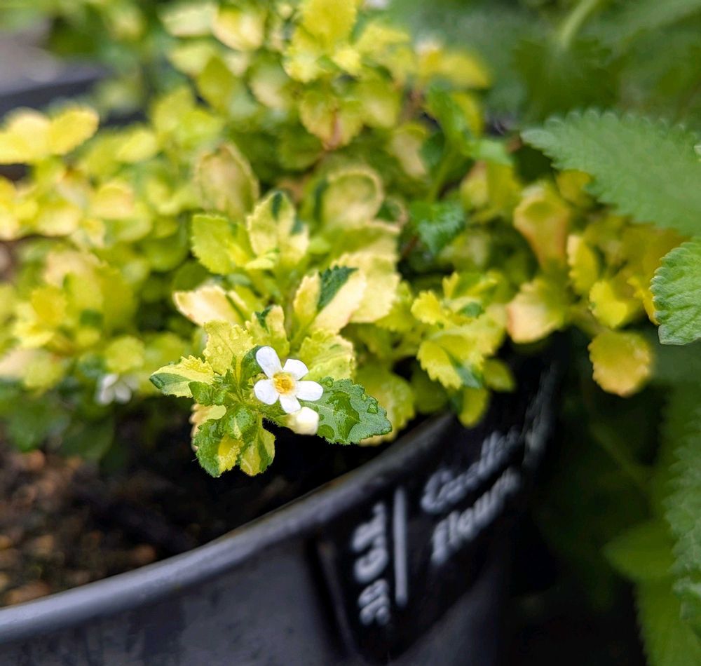 冬越し夏越しした斑入りのバコパが咲き始めました💚🤍
