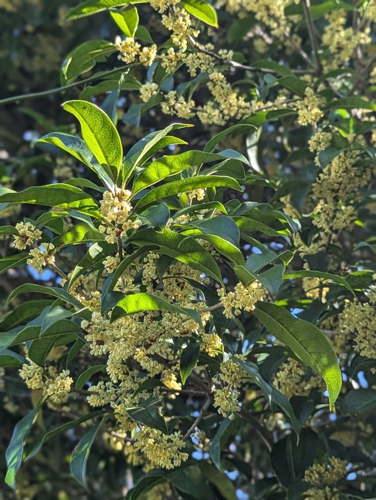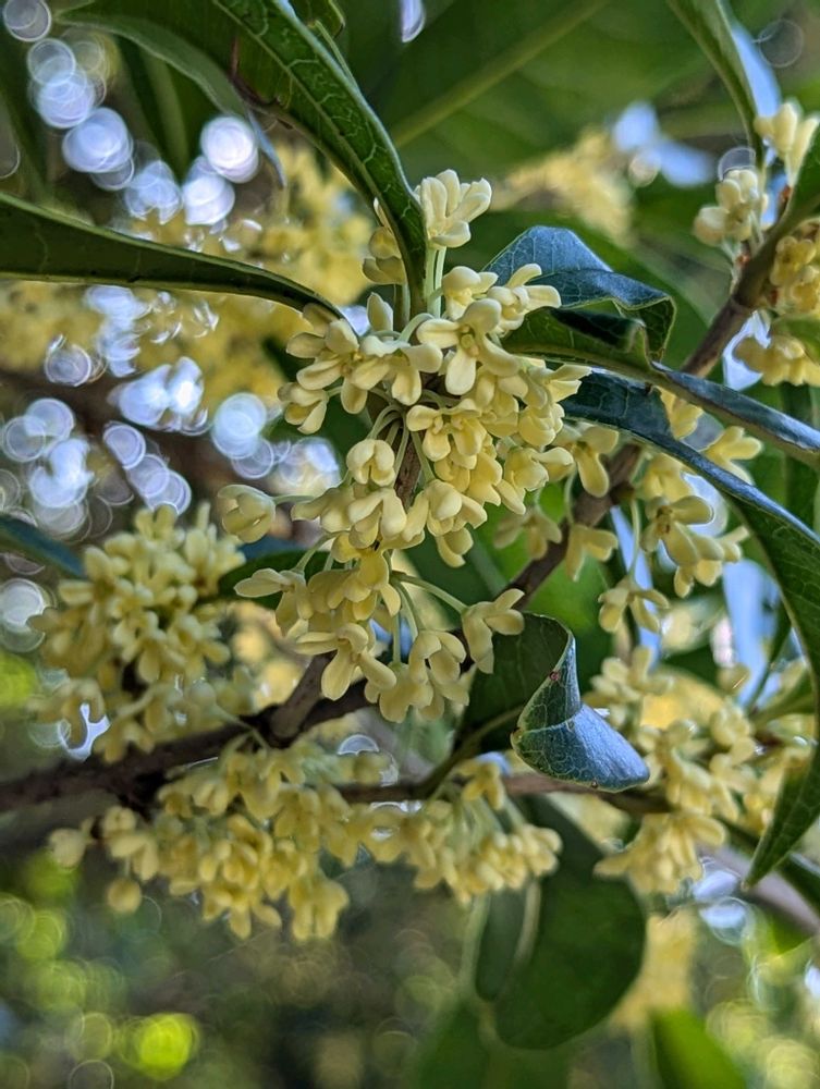 昨日の散歩でキンモクセイが咲き始めたのを確認したので、近くの公園に行ってみたらウスギモクセイが満開でした🌝🌝🌝