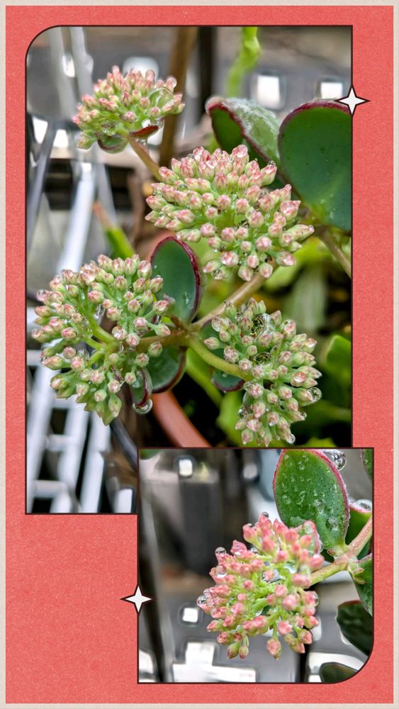 此方、カランコエの葉っぱ☘️🍀がスク盛りっと 花芽がやーっと昨日🌟付いてのを発見👀るのが ワクワク💗頑張って👍って声掛けしてます🤗