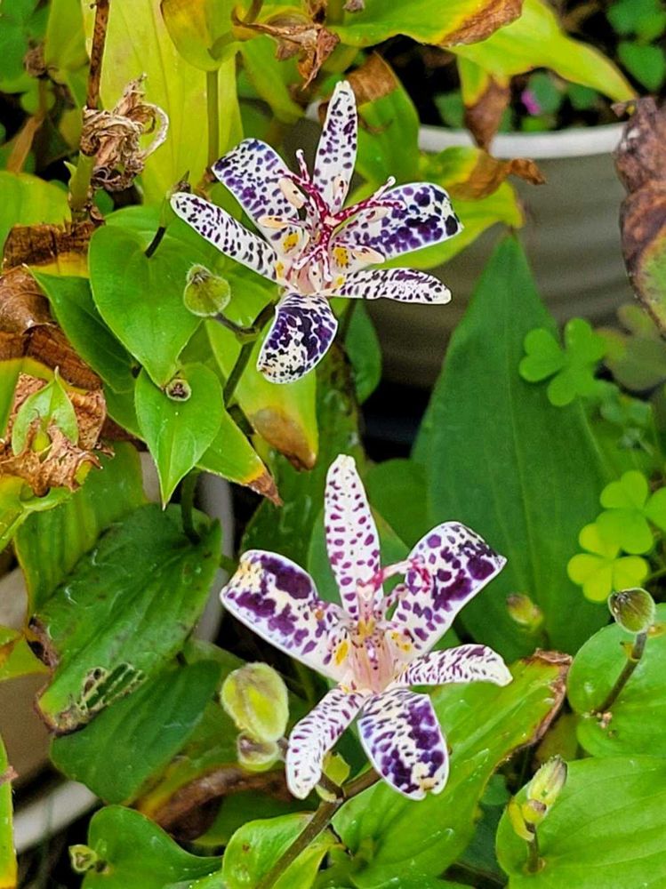 庭の鉢植え4年目、ホトトギスが今年も咲き始めました。