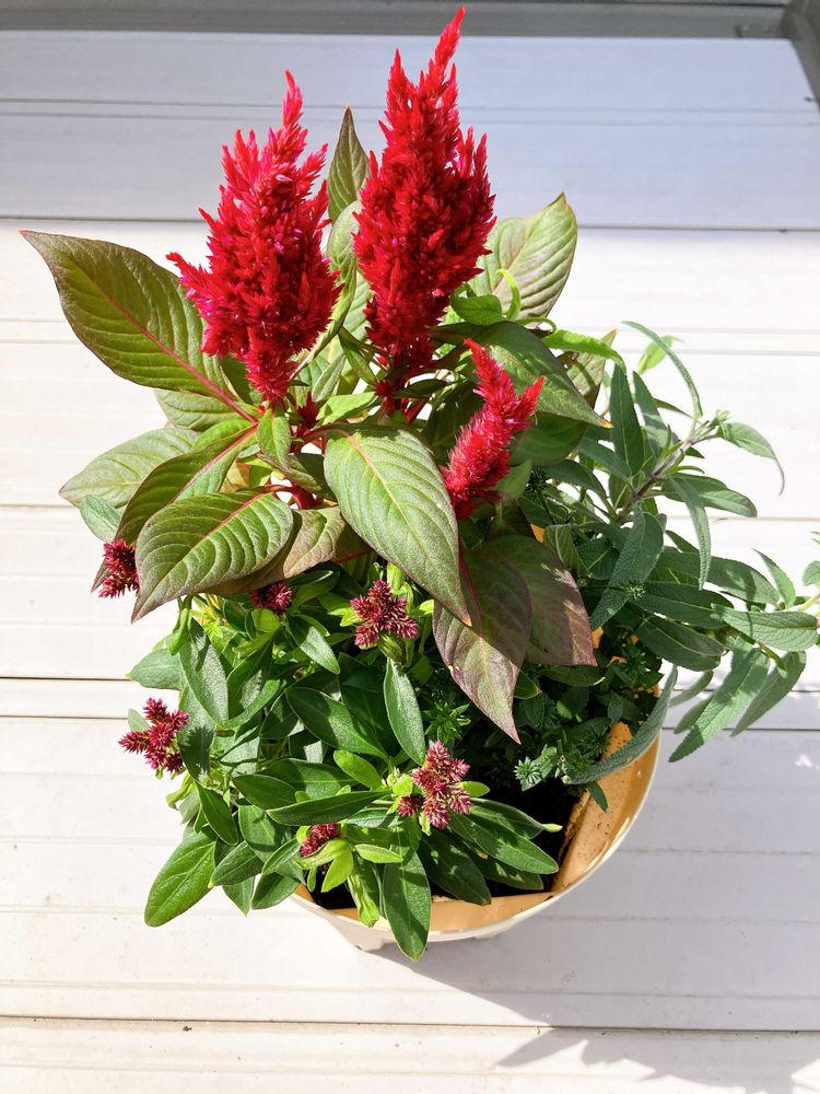 普段寄せ植えは自分で作成したい派なので買わないのですが、これは4種類のお花とスリット鉢でしたのでお得感があったため買いました😁