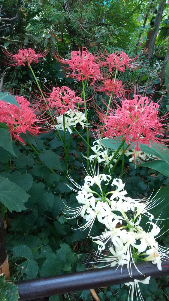 家の庭に、白いヒガンバナと赤いヒガンバナの花が綺麗にたくさん咲いていました。白と赤のヒガンバナの花が綺麗ですね❤️🤍