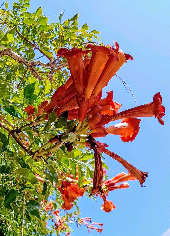 アメリカノウゼンカズラ初めて見ました☺️本当にトランペット🎺のようで、濃いオレンジ色が綺麗です💕
