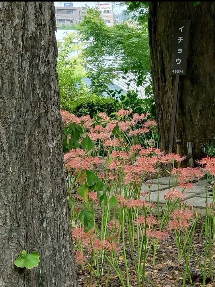 ❺西方寺さんのイチョウの木🌳の間の彼岸花