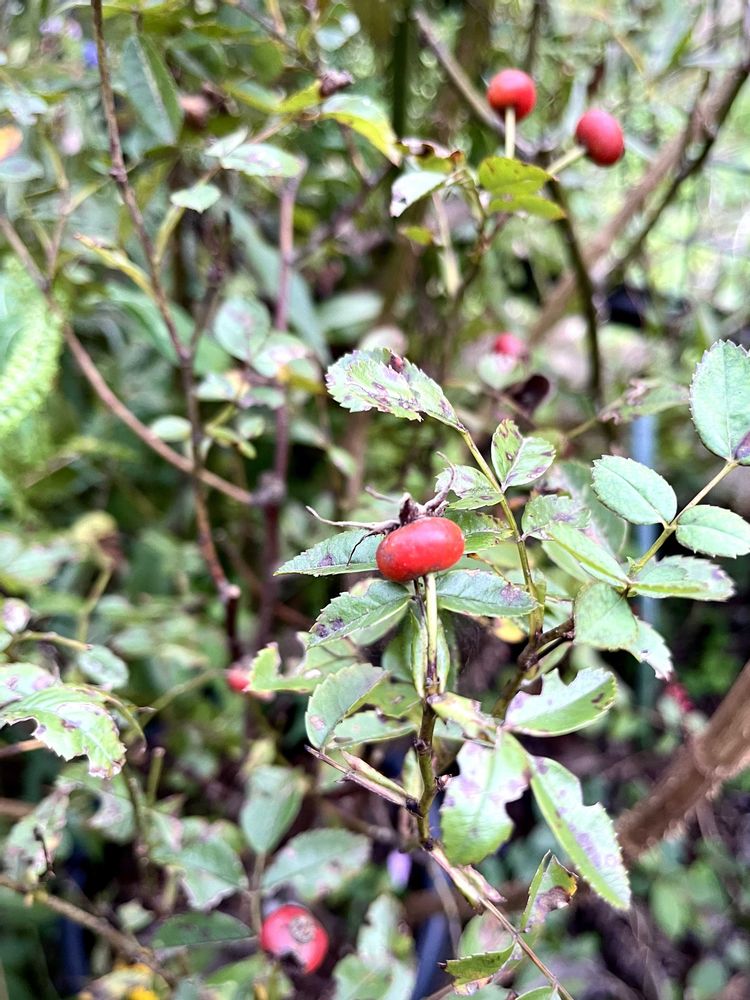 4 名前がパッと出て来ないけど、YUMIKOさんからのバラに今年も実が着きました!花は💙🩷