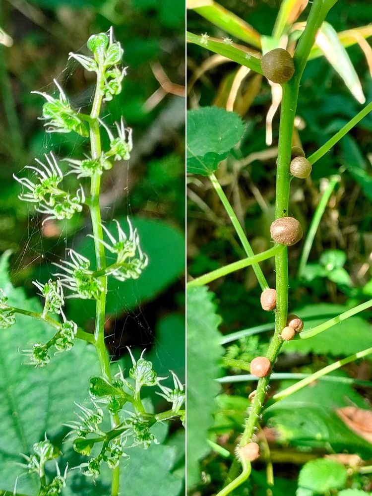✽茎頂部に雌花序が、その下に雄花序がつく、いづれも円錐状