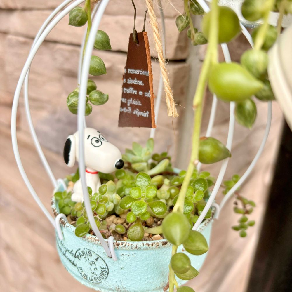 鳥かご風のリメ缶にはみどりんなブロウメアナを植えています😊