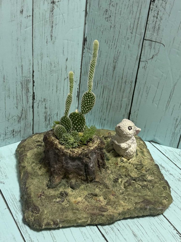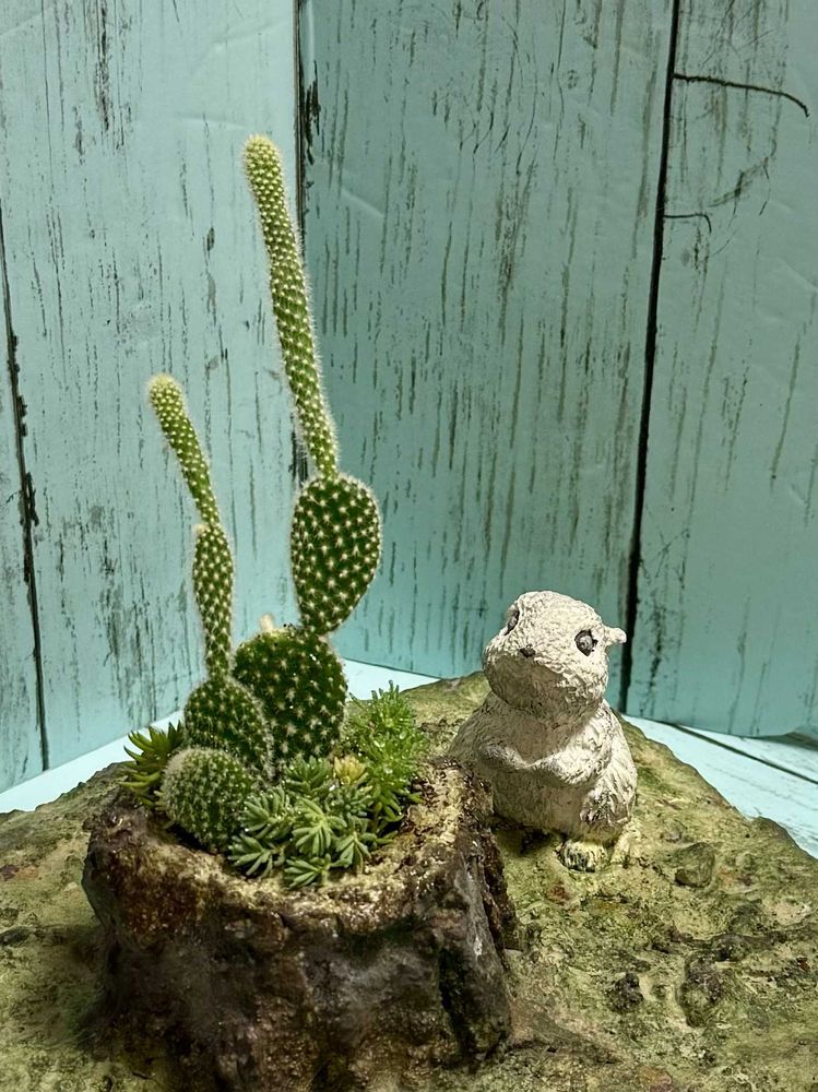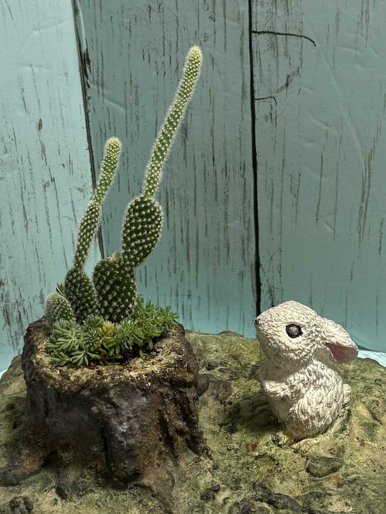 かおりんチャンの可愛いモルタルうさぎ鉢、見てるだけでも癒されるから、サボテンチャンは生きててくれればOKです(*´艸`)フフフッ♡