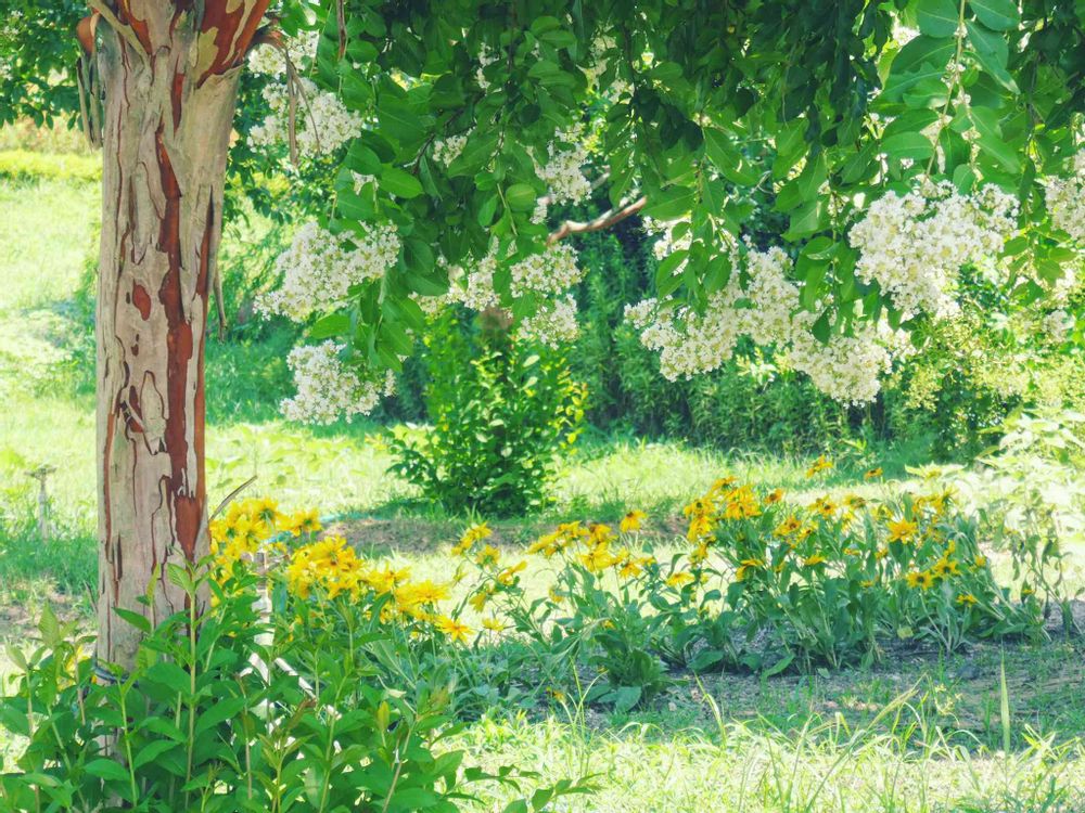 いつも お花をアップにして撮ることが多いのですが、今回は少し引いて撮った庭の風景をまとめました。