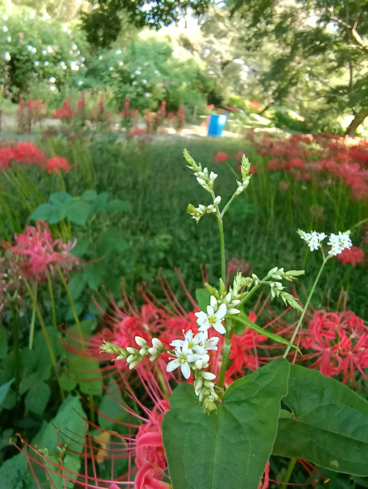 私も昨日ヒガンバナの上に被さるように咲いてたシャクチリソバ見ました♪