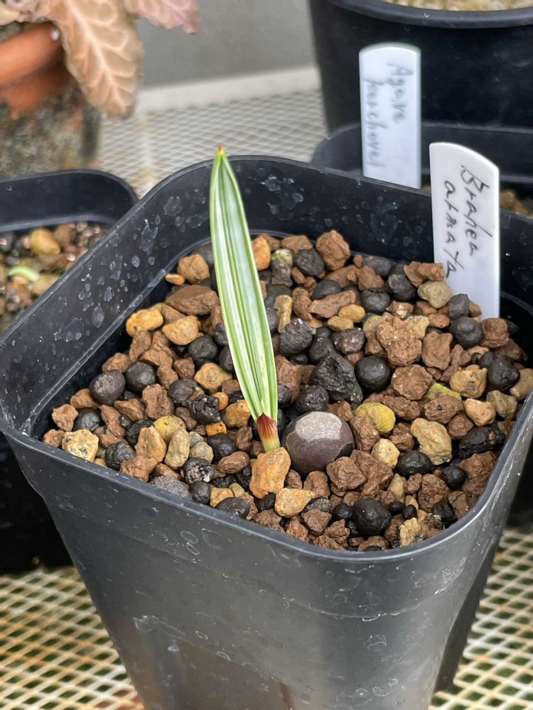 最後は今年の植え替え時に根挿ししてみたトリステ、5mmくらいの大きさでしたがちゃんと芽を出してくれました。素晴らしい。他にもちっこい根の塊ができていたのでやってみるかな、でもまた掘り起こすのも可哀想な気もする。