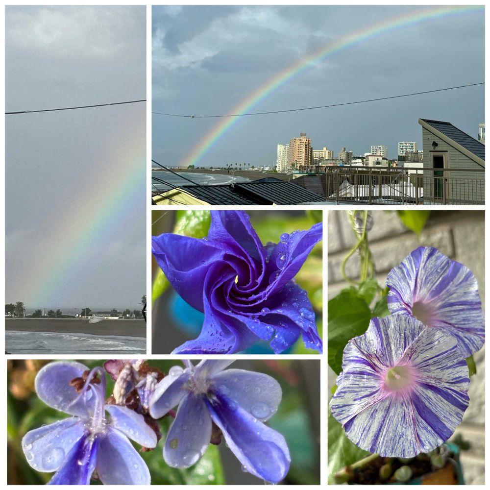 素敵な💙💟ブルー系のお花に虹🌈がとっても合ってます👍