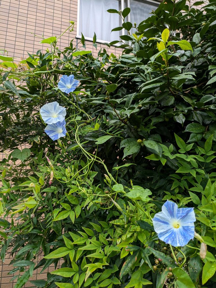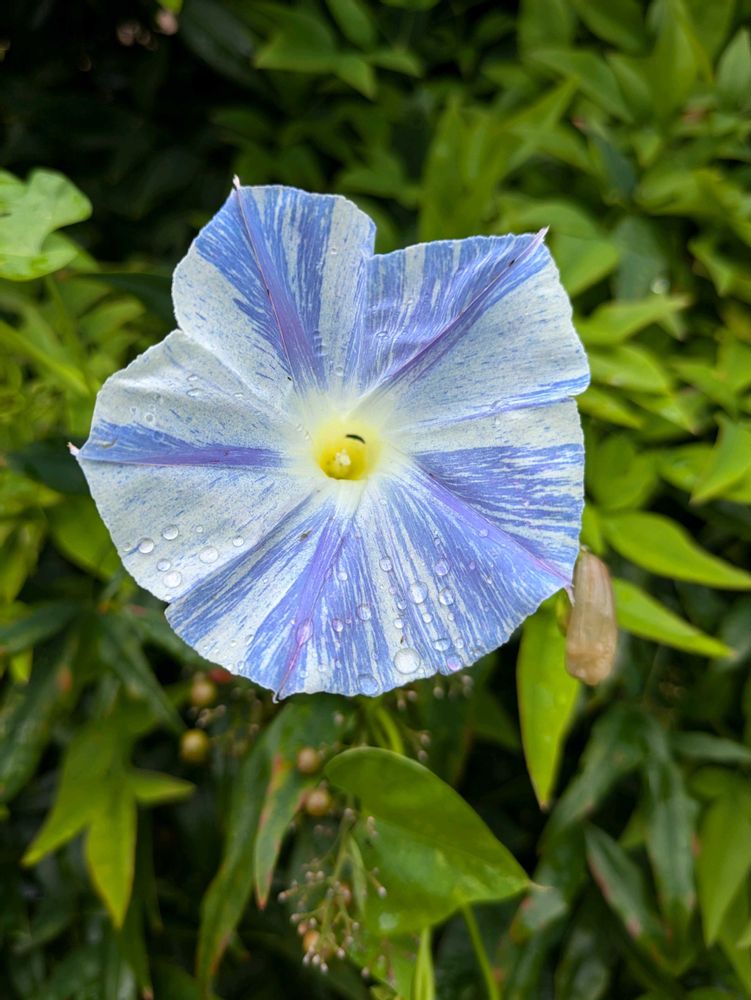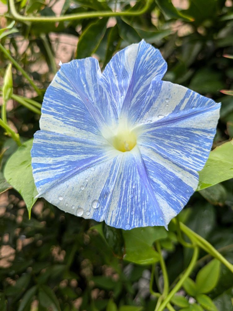 アサガオ フライングソーサー 小雨の中、咲いています。