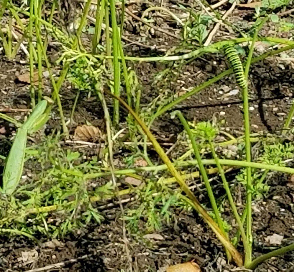 あらあら、ニンジンとアオムシとカマキリを、みんなそのまま育てているんですね😳
