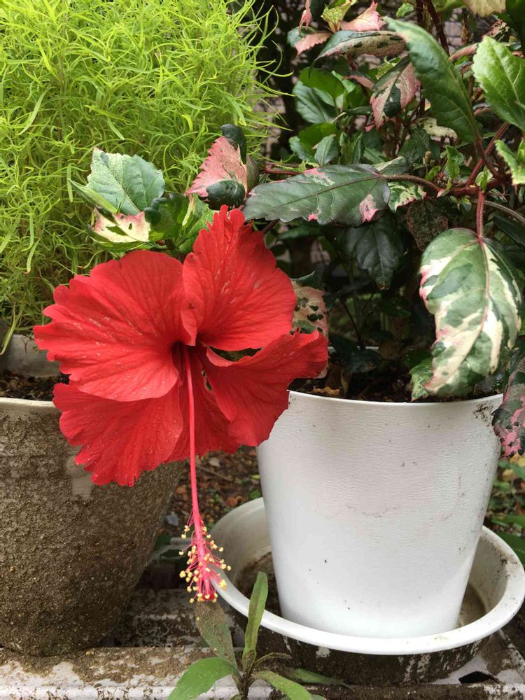 その中でも斑入りハイビスカス🌺は花が咲いていました