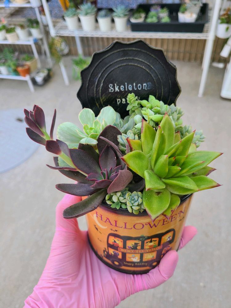 ハロウィン🎃の寄せ植え、ダーク色の花いかだがいい味だしてる😆👍